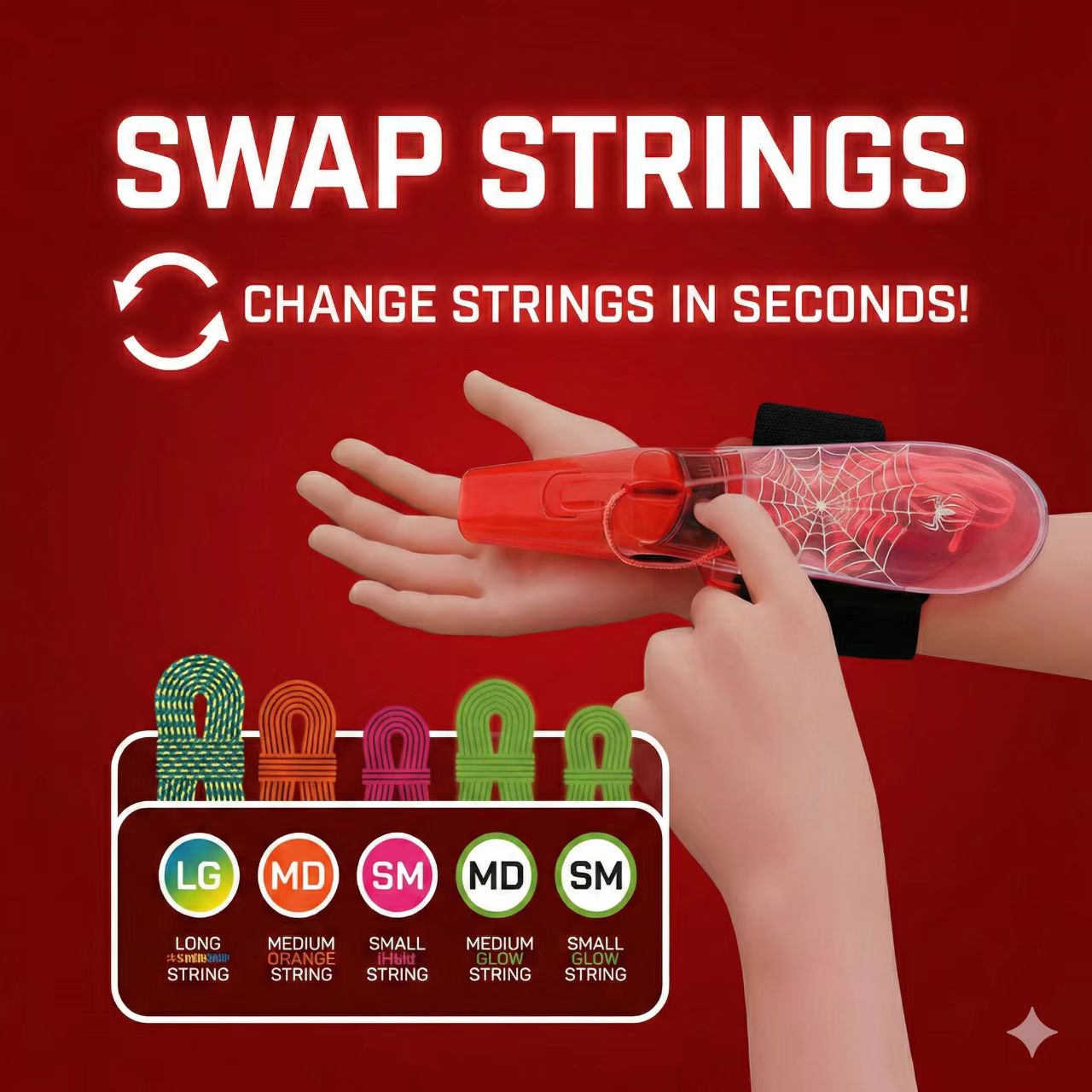 he glow lasts forever! Aracna has a built in LED that constantly charges the string to make it glow. Make sure you are using the included white glow strings.